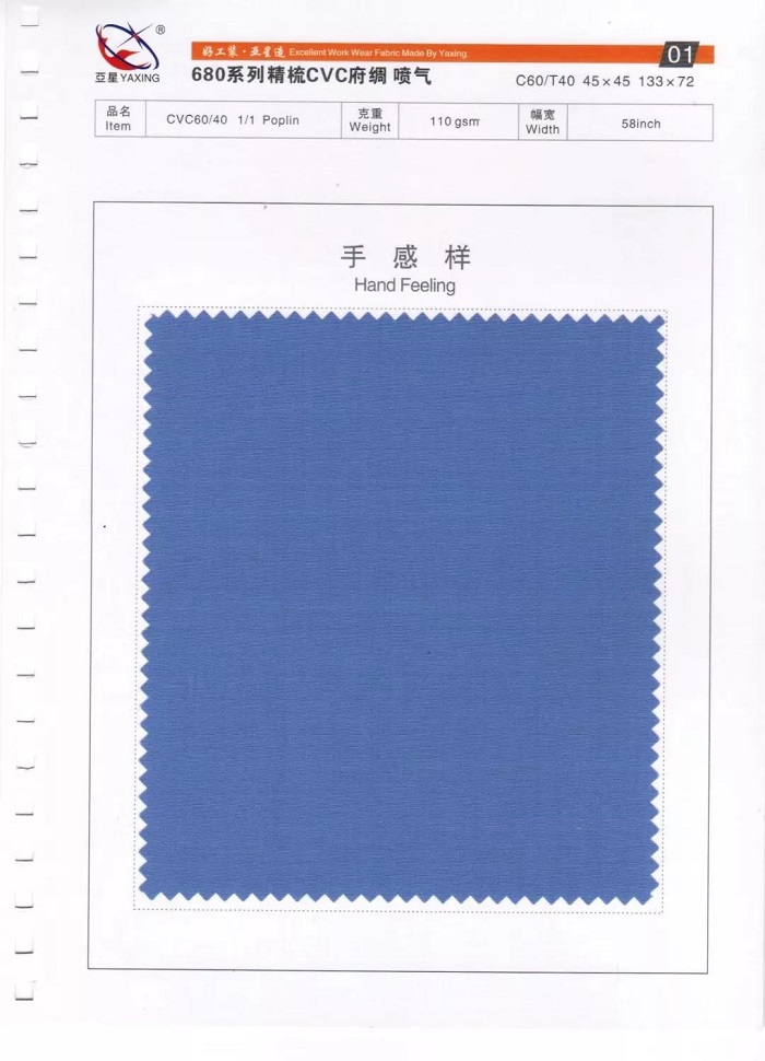 CVC精梳府綢 C60/T40, 45x45 133x72 ¶, 58" ,克重:110克/平方米