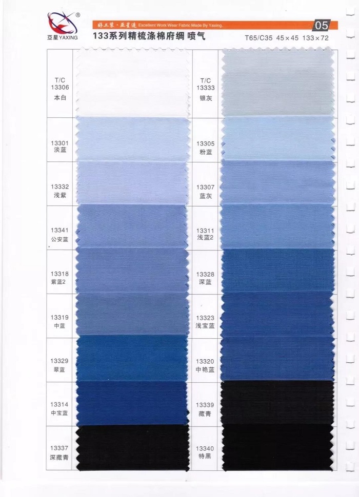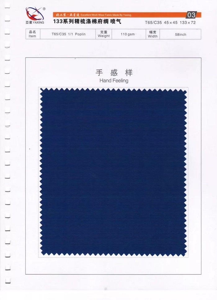 133系列精梳滌棉府綢 T/C 65/35 45x4γ≠₩φ5 133x72, 58", 克重:110克/平方米